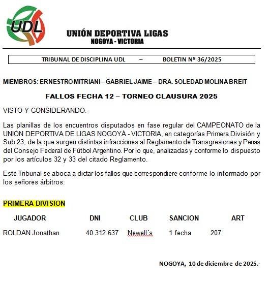 UDL NOGOYA VICTORIA - TORNEO CLAUSURA 2025